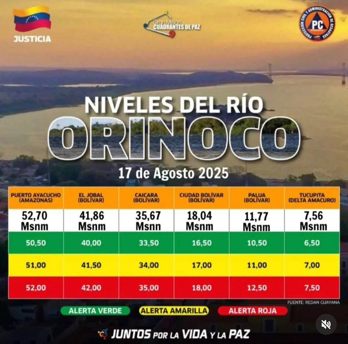 La alcaldía de Independencia informó que el domingo 17 de agosto el río alcanzó los 18,04 kilómetros sobre el nivel del mar, lo que implicaba seis centímetros por encima de la cota del sábado 16 de agosto. Para este lunes 19 de agosto, según la misma fuente, se ubica en 18,05 metros sobre el nivel del mar; es decir, un centímetro más.