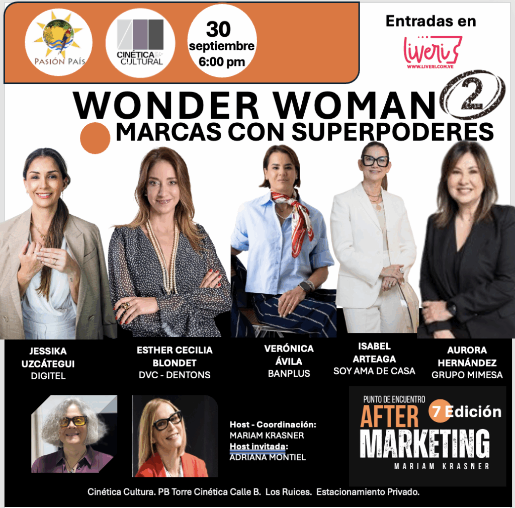 La cita, que se celebrará el martes 30 de septiembre a las 6:00 p.m. en la Torre Cinética Cultural de Los Ruices, reunirá a destacadas profesionales del marketing, la comunicación y el liderazgo bajo el lema «Wonder Woman, Marcas con Superpoderes».