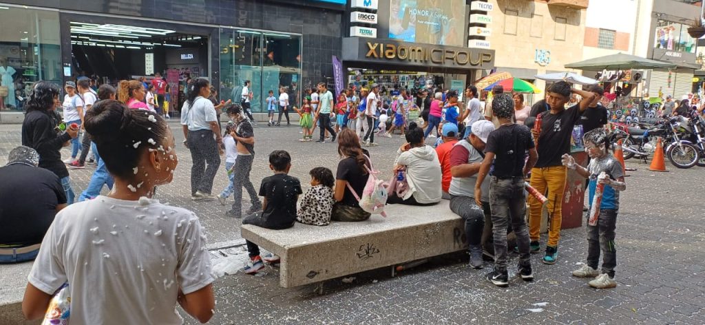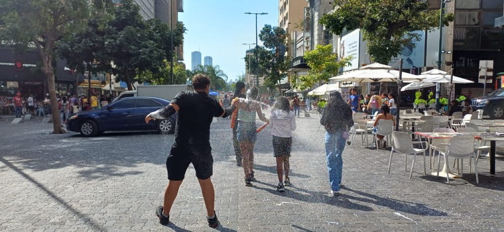 De punta a punta, desde la avenida Lincoln hasta la frontera con el municipio Chacao, Sabana Grande pasó un martes de carnaval repleto de la famosa tágana o espuma.