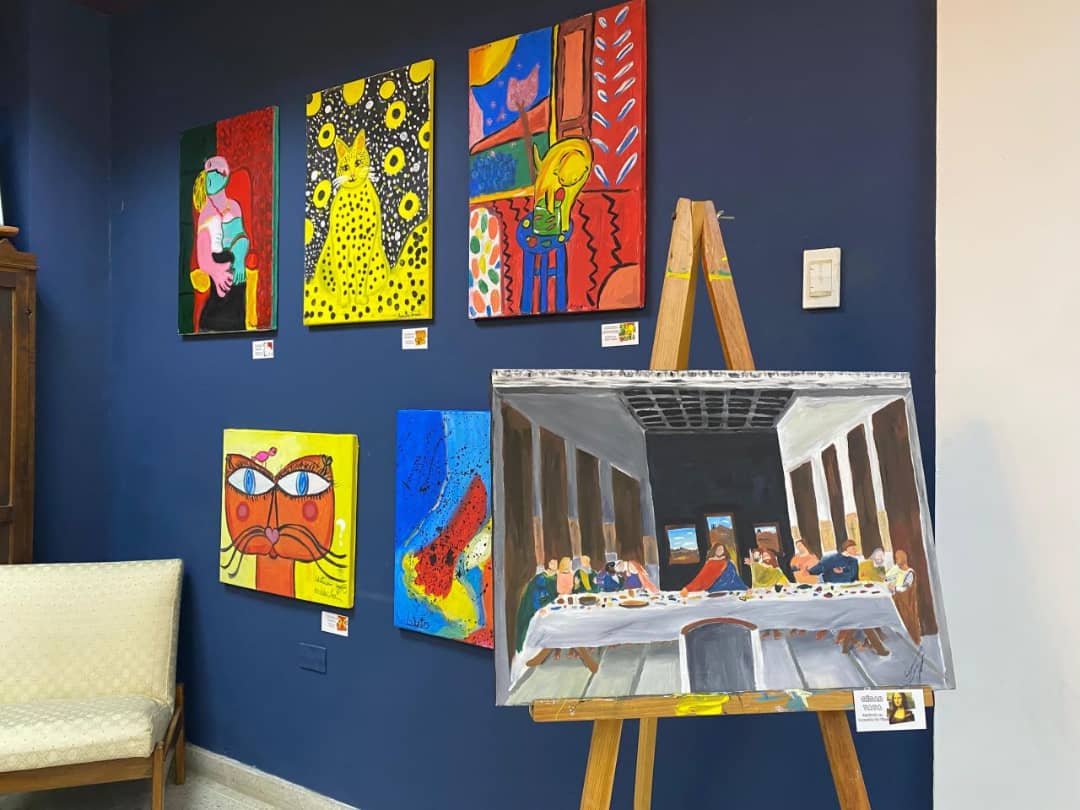 La galería de obras incluyó retratos, paisajes, naturalezas muertas y composiciones abstractas, todas inspiradas en maestros como Claude Monet, Henri Matisse, Romero Britto, Fernando Botero, Frida Kahlo, así como en artistas venezolanos como Armando Villalón, Esteban Castillo, Rafael Monasterios y Macario Colombo.