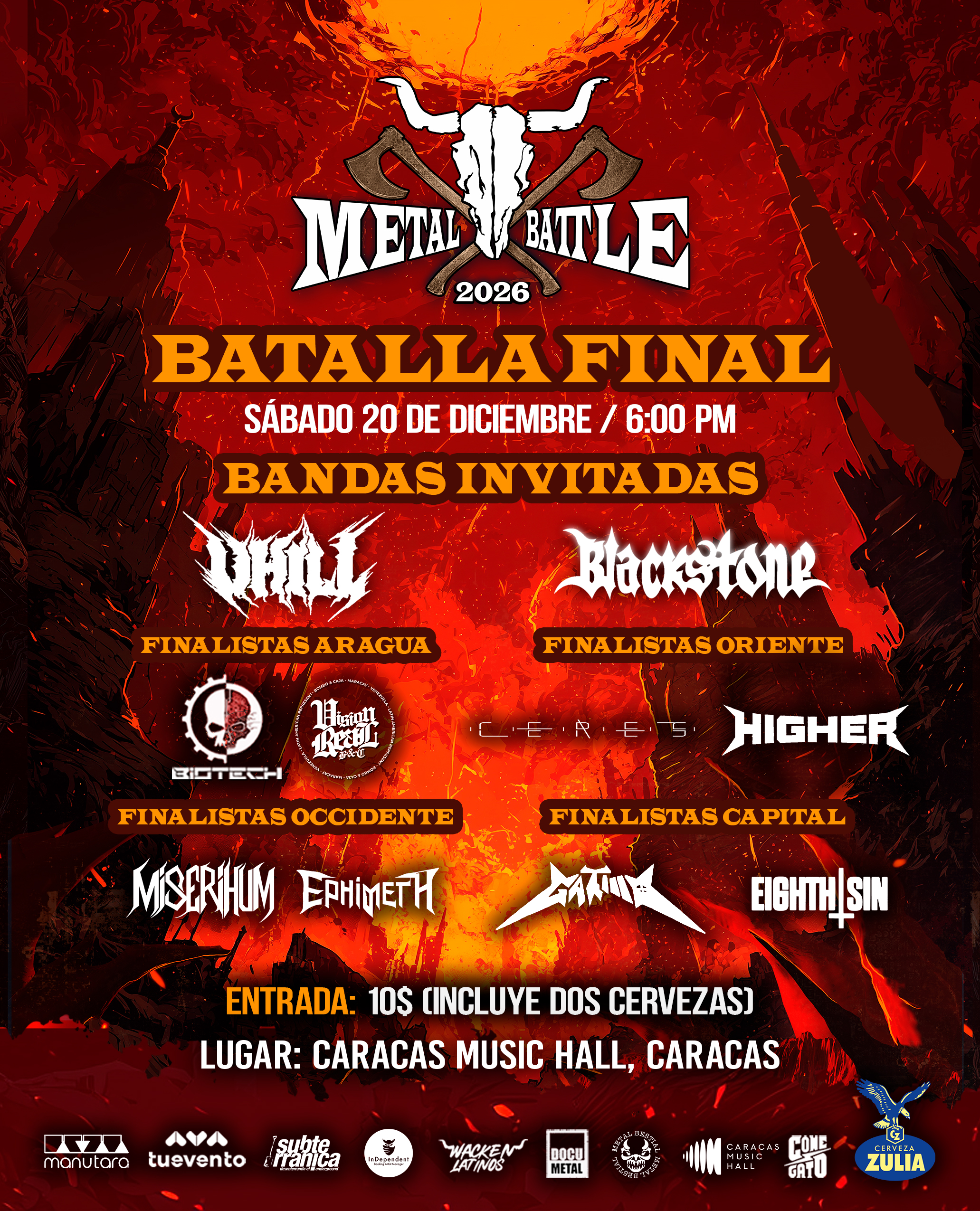 La batalla final ha llegado, Caracas se prepara para recibir a las bandas que disputarán el honor de representar a Venezuela en el Wacken Metal Battle Suramérica Norte, un escenario donde solo el poder, la entrega y la autenticidad del metal nacional dictarán sentencia.