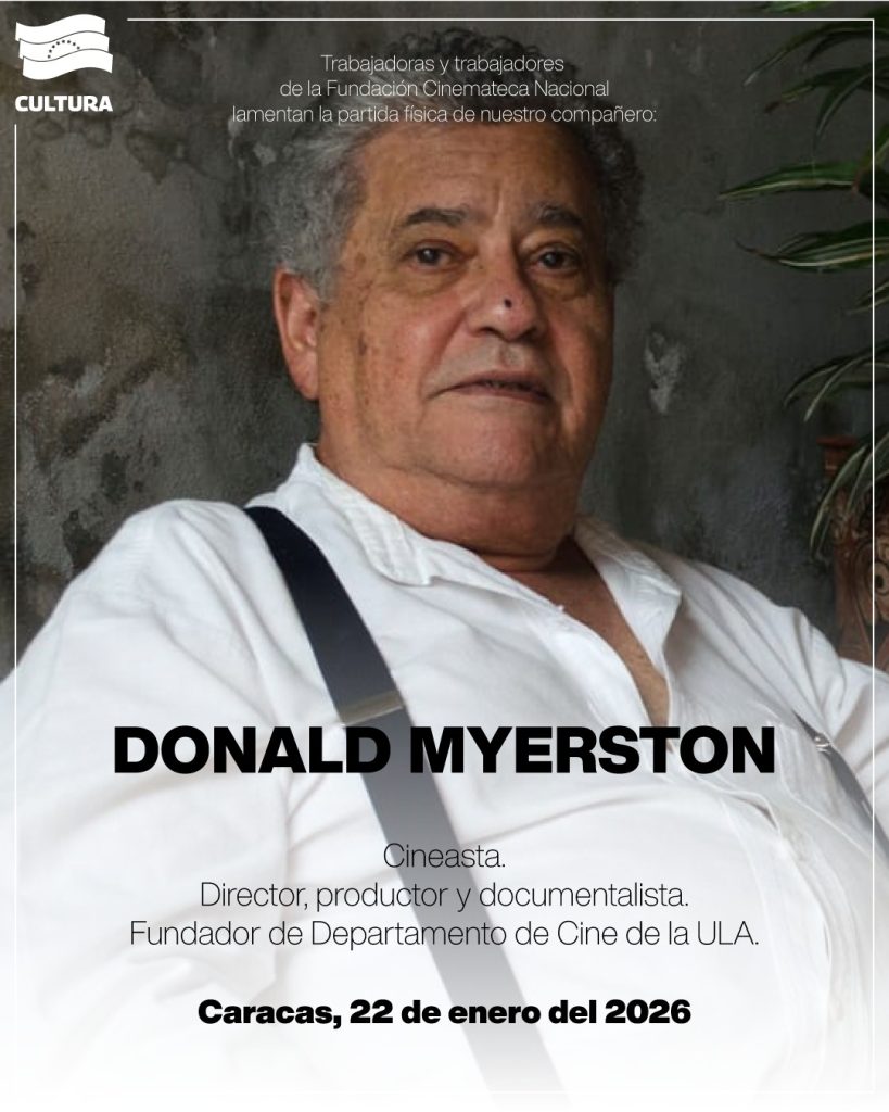 La cultura venezolana amaneció con una lágrima en el pecho por la partida física de uno de los pilares del cine nacional: Donald Myerston. Así lo dio a conocer el ministro del Poder Popular para la Cultura, Ernesto Villegas, este viernes 23 de enero.