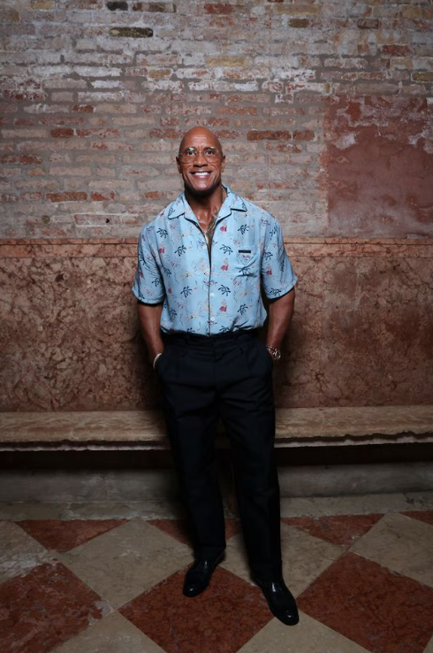 Las imágenes más impactantes del cambio físico de Dwayne Johnson salieron a la luz el 30 de agosto, durante el evento de Miu Miu Women’s Tales en la 82a. edición del Festival de Cine de Venecia. En esa ocasión, lució un pantalón oscuro y una camisa azul claro de manga corta.