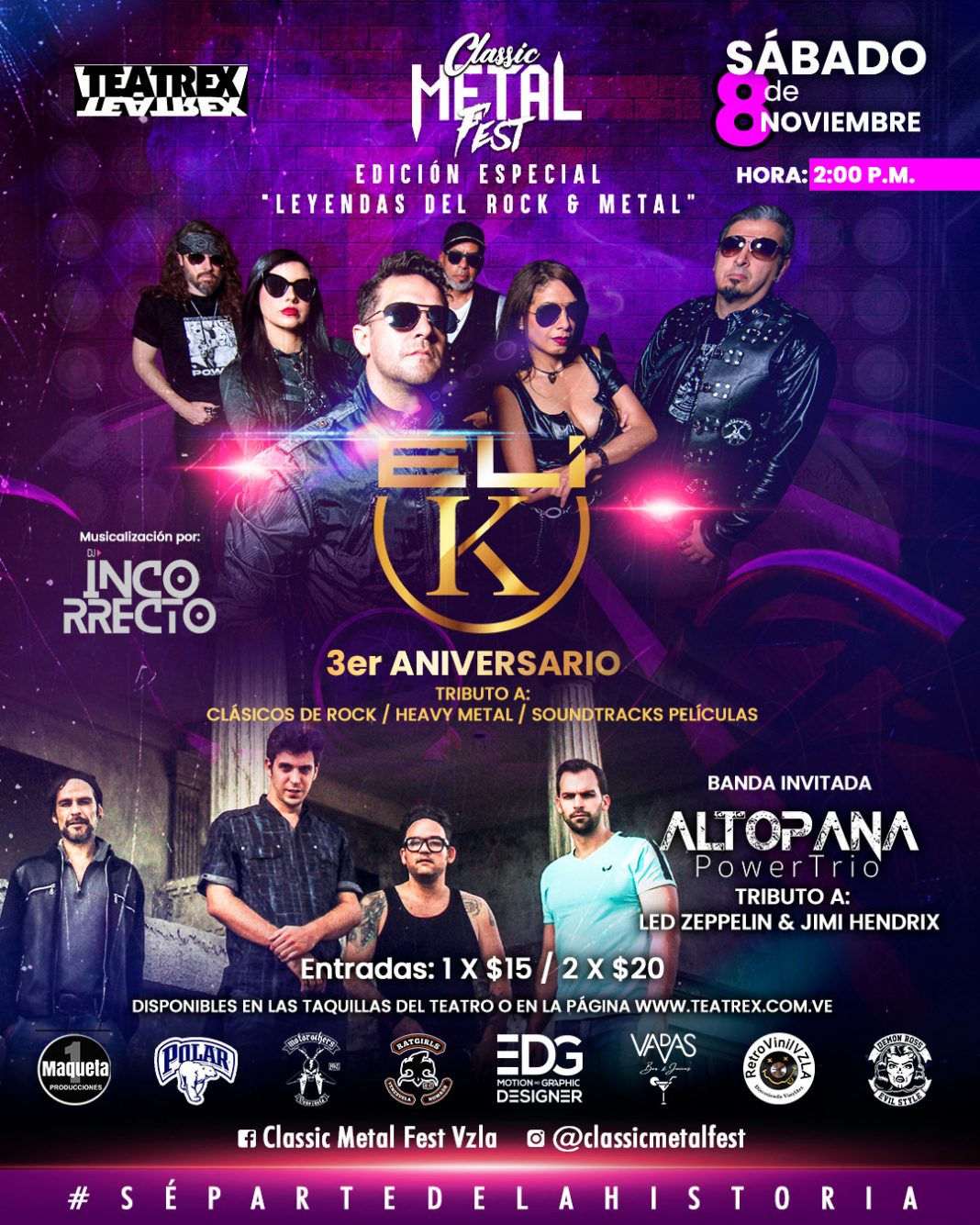 Para este show, ELI-K estrenará un bloque de soundtracks de películas llevadas a rock, como suele sorprendernos los arreglos de ELI-K.
