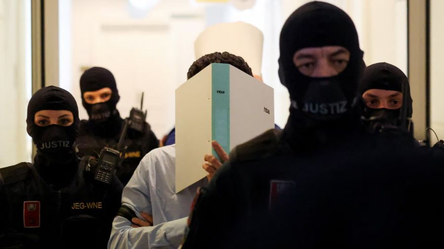 Los dos acusados ocultaron sus rostros al ingresar esposados a la sala donde comenzó en la ciudad de Wiener Neustadt, a unos 50 kilómetros de Viena.