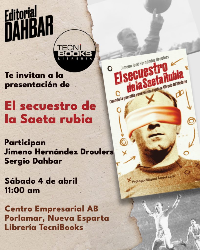 El secuestro del futbolista Alfredo Di Stefano se convirtió en el libro «El secuestro de la Saeta Rubia», la más reciente obra de Jimeno Hernández Droulers y editada por Editorial Dahbar.