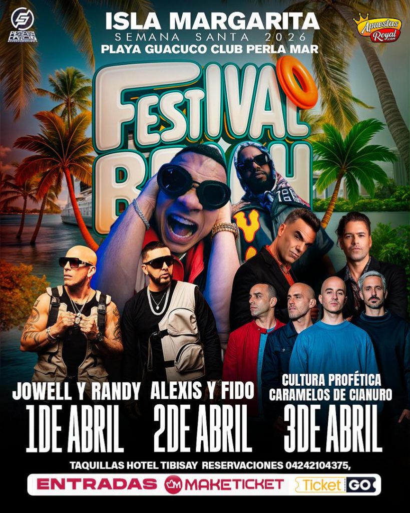 CP Producciones anunció el Festival Beach que se llevará a cabo en el Playa Guacuco, Club Perla Mar de la Isla Margarita durante la Semana Santa 2026. Este evento musical promete ser una experiencia única para los amantes de la música en vivo.