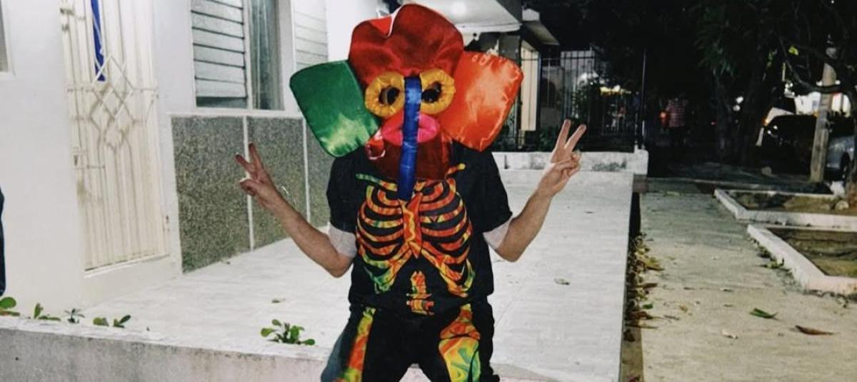 La cantante se camufló entre el colectivo Palo e’ Muerte, vestida como la muerte, una de las emblemáticas figuras de la tradición carnavalesca del país cafetalero y disfrutó de La Guacherna, un acostumbrado desfile nocturno del certamen, como un participante más.