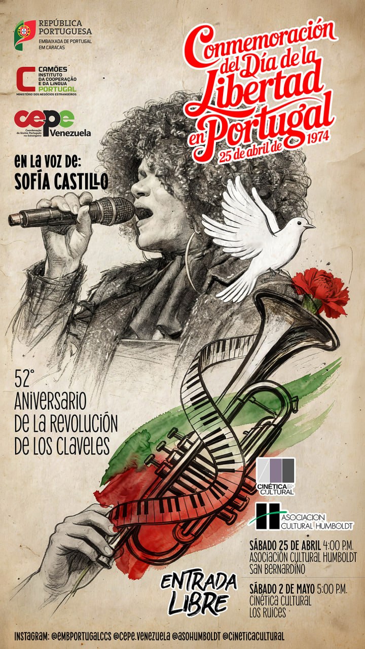 Bajo el título “Conmemoración del Día de la Libertad en Portugal: 25 de abril de 1974”, se celebrarán dos conciertos en clave de jazz, con entrada libre, el 25 de abril en la Asociación Cultural Humboldt y el 2 de mayo en la Sala de Cinética Cultural. La programación propone un encuentro musical luso-venezolano para celebrar la libertad, la historia contemporánea y el profundo vínculo tejido por la emigración.