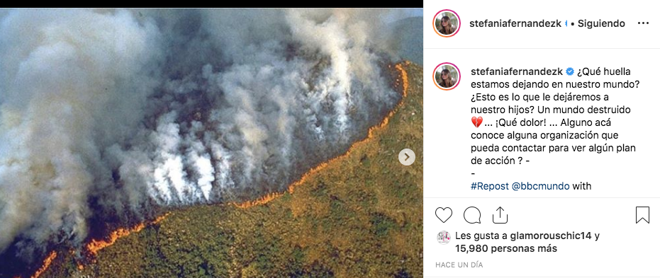 Tanta ha sido su devoción ecologista que este miércoles 21 de agosto manifestó su dolor por los incendios en la Amazonia.