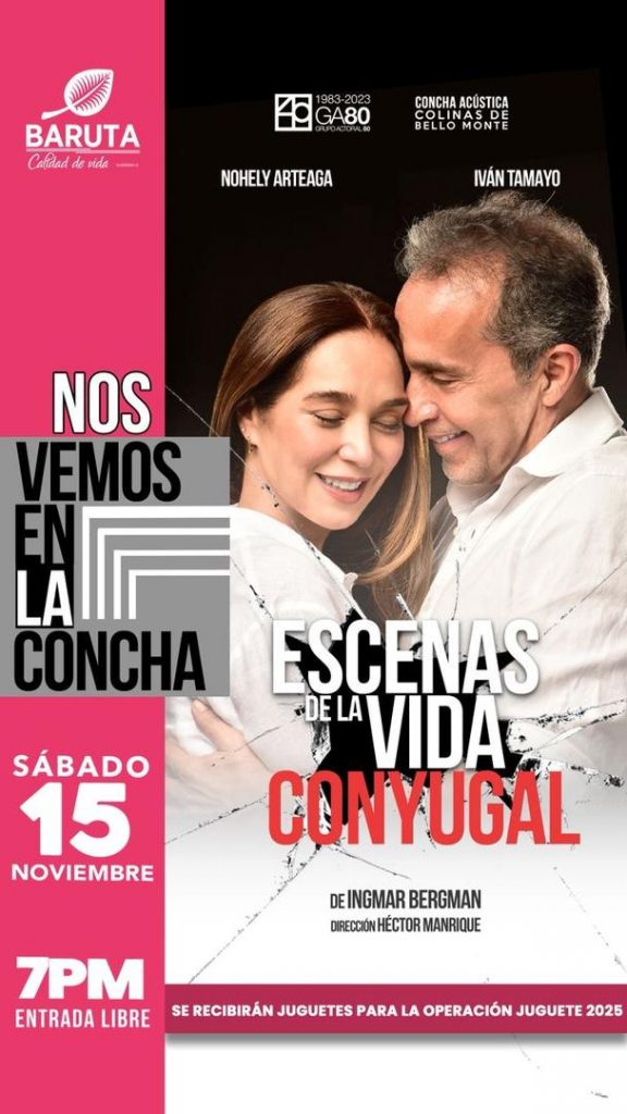 La exitosa comedia romántica “Escenas de la vida conyugal”, protagonizada por Nohely Arteaga e Iván Tamayo, llegará al público caraqueño el próximo sábado 15 de noviembre en el marco del programa cultural “Nos Vemos en La Concha”, impulsado desde hace seis años por la Alcaldía de Baruta.