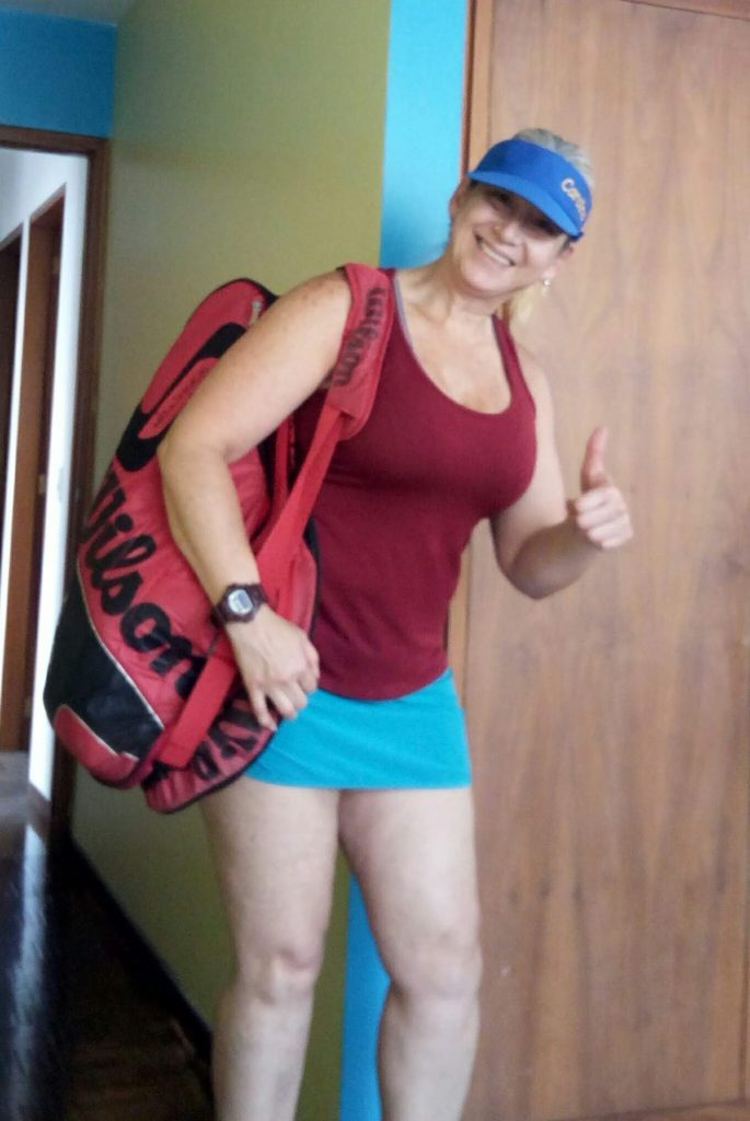 Afirma, que al igual que el voleibol y el bowling, le agradó mucho y le dijo a su amiga María Elena que deseaba practicarlo formalmente. «Y pues que creen, conseguimos entrenar y mejorar con un excelente tenista, desde allí no he parado de practicar y participo en campeonatos en la Gran Caracas todos los años».