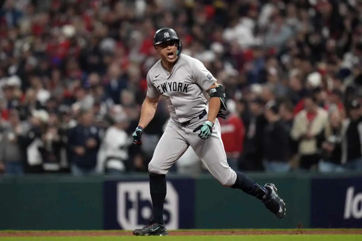 Giancarlo Stanton conectó su tercer jonrón en igual número de juegos y su cuarto bambinazo de la Serie de Campeonato de la Liga Americana el sábado por la noche en el Juego 5. Un cohetazo de 446 pies al jardín izquierdo que empató el partido a 2 en la sexta entrada, preparando el camino para el jonrón decisivo de Juan Soto en la décima, en la victoria de los Yankees de Nueva York por 5-2 ante Guardines de Cleveland que les dio el banderín del Joven Circuito.