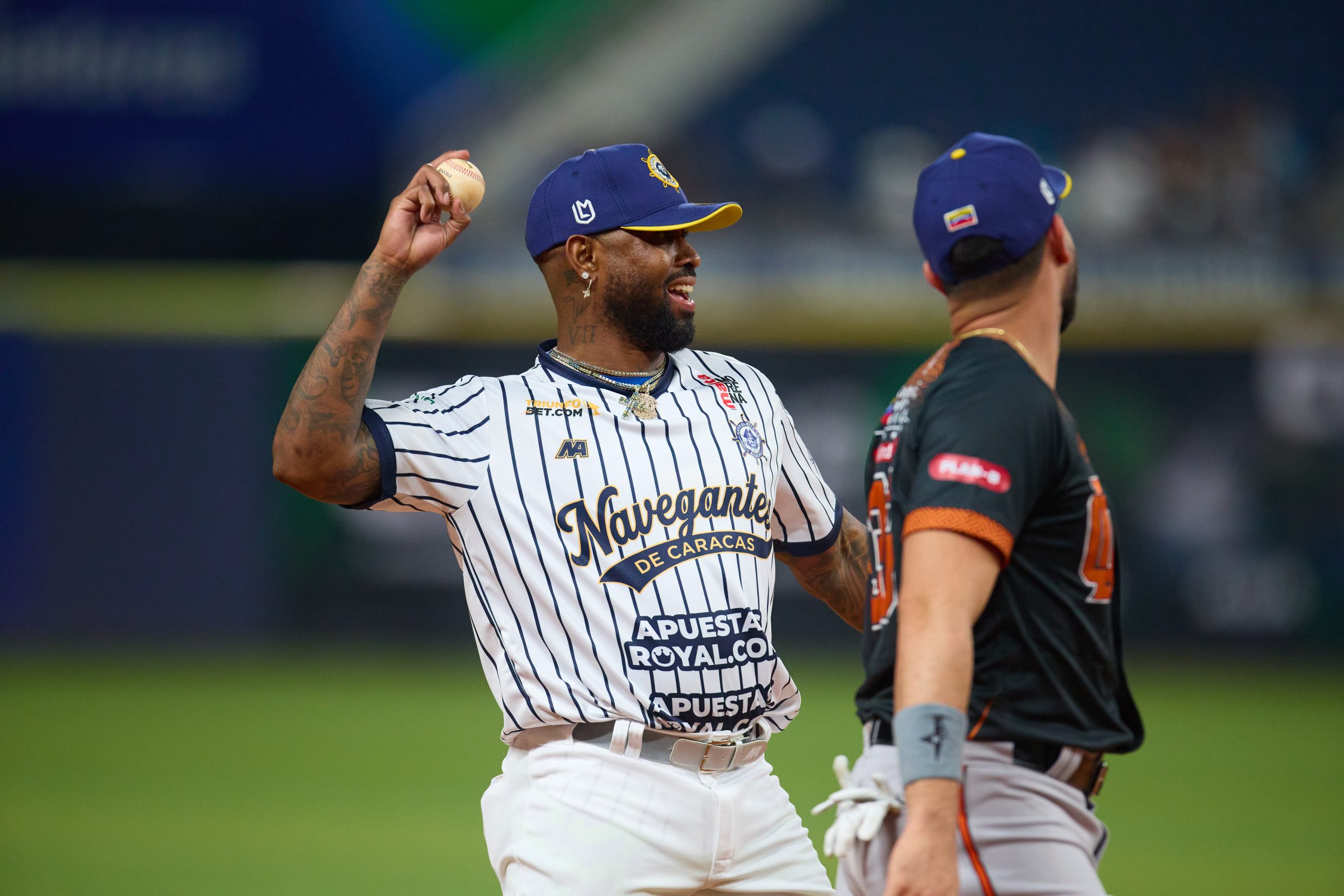 El espectáculo no faltó con las intervenciones de las madrinas-mánagers de ambos equipos, especialmente de María Alexandra Bastidas que protestó enérgicamente las decisiones de Henry ‘Moñoño’ León y defendió a su equipo. Tanto Budú (Leones) como ‘La Titi’ Zambrano (Navegantes) se poncharon en sus turnos al bate.