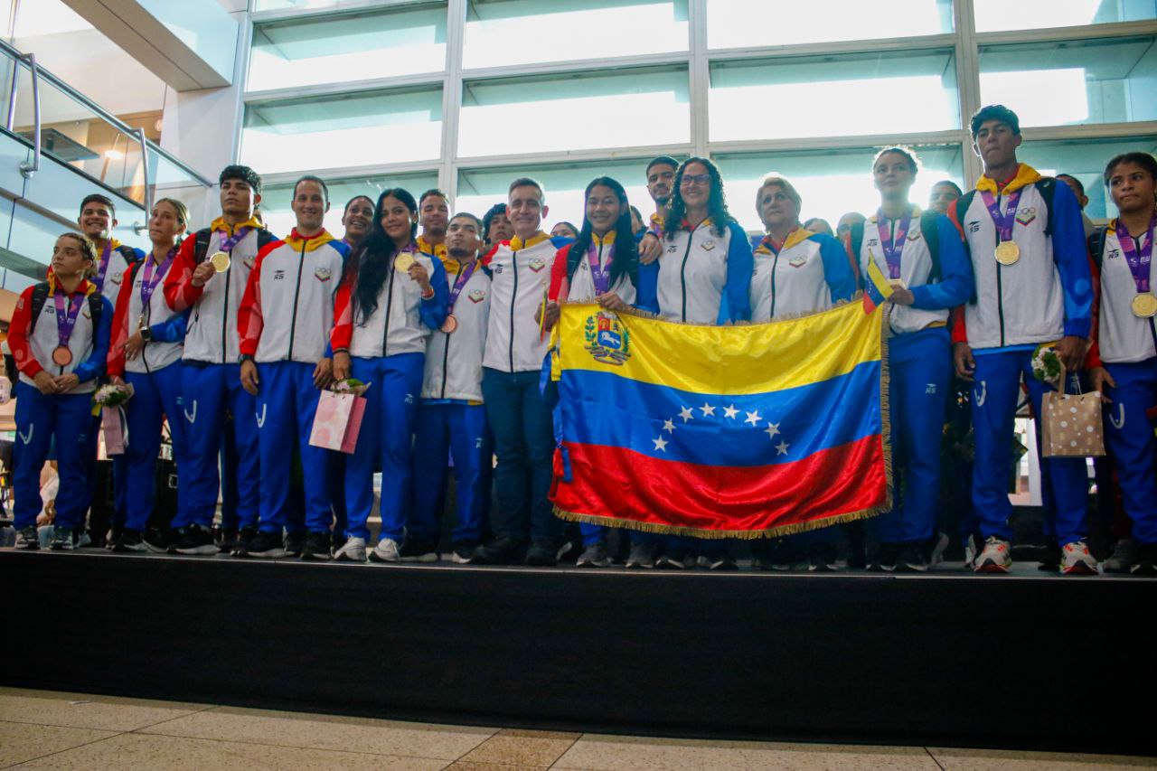 Atletas venezolanos que hicieron historia en los Juegos Panamericanos Junior Asunción 2025 fueron recibidos este domingo en el Aeropuerto Internacional Simón Bolívar, luego de cosechar un total de 46 preseas y ocupar el noveno lugar del medallero; en una ceremonia que resaltó el ímpetu deportivo y el folklore criollo, reseñó nota de prensa.