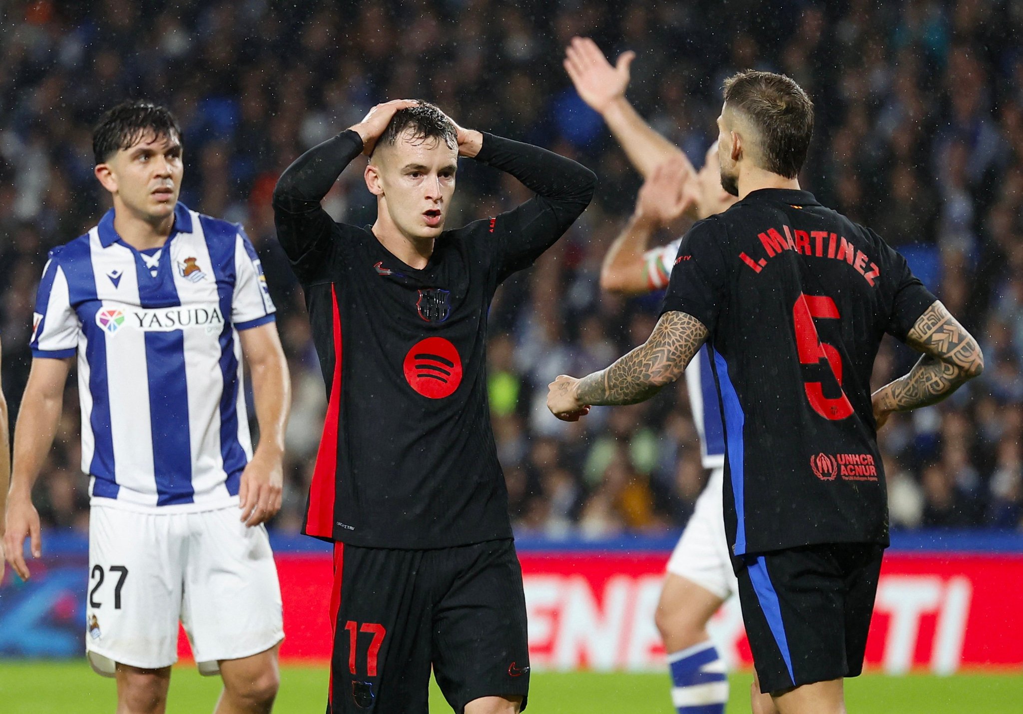 Final con polémica a la buena racha de victorias del Barça, que no pudo superar a la Real Sociedad en Anoeta (1-0) y encajó la segunda derrota liguera del curso.