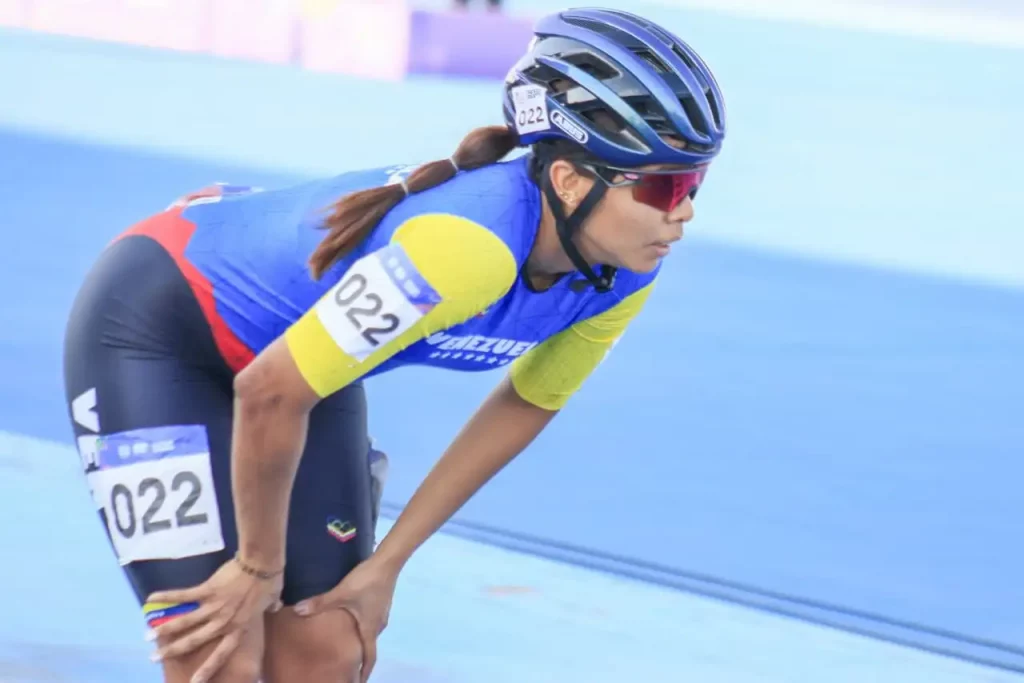 La patinadora aragüeña fue la primera en pisar la pista en competencia oficial para la delegación nacional a las 9:00 a.m. (hora local), para la final de los 200 m contra meta.