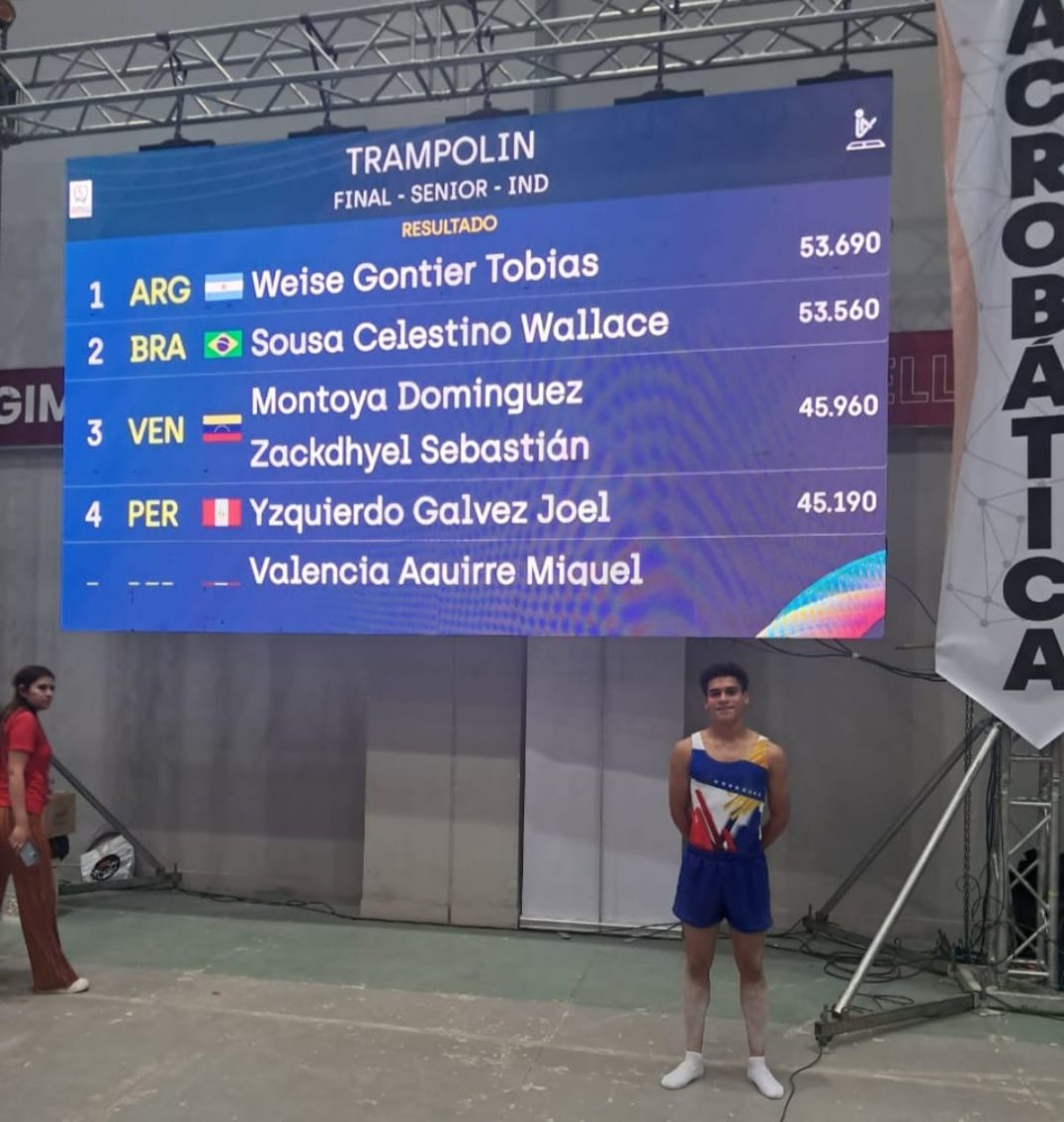 El gimnasta yaracuyano Zackdhyel Sebastián Montoya dejó en «alto el nombre de Venezuela» y de su estado natal al colgarse una medalla de plata y una de bronce en el Campeonato Suramericano de Gimnasia Trampolín, que se celebra en Cochabamba, Bolivia.