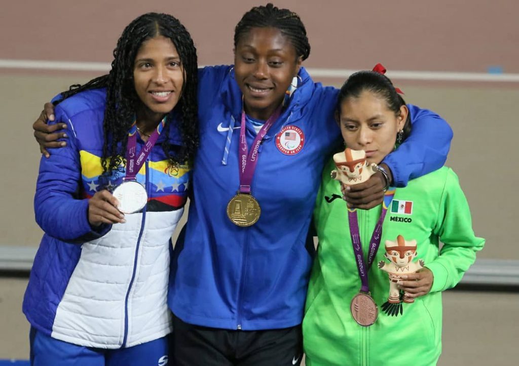 La venezolana Norkelys González, también destacó al ganar una medalla de plata en la competencia de 400 metros atletismo femenino, competidores T20, al registrar marca de 59.81.