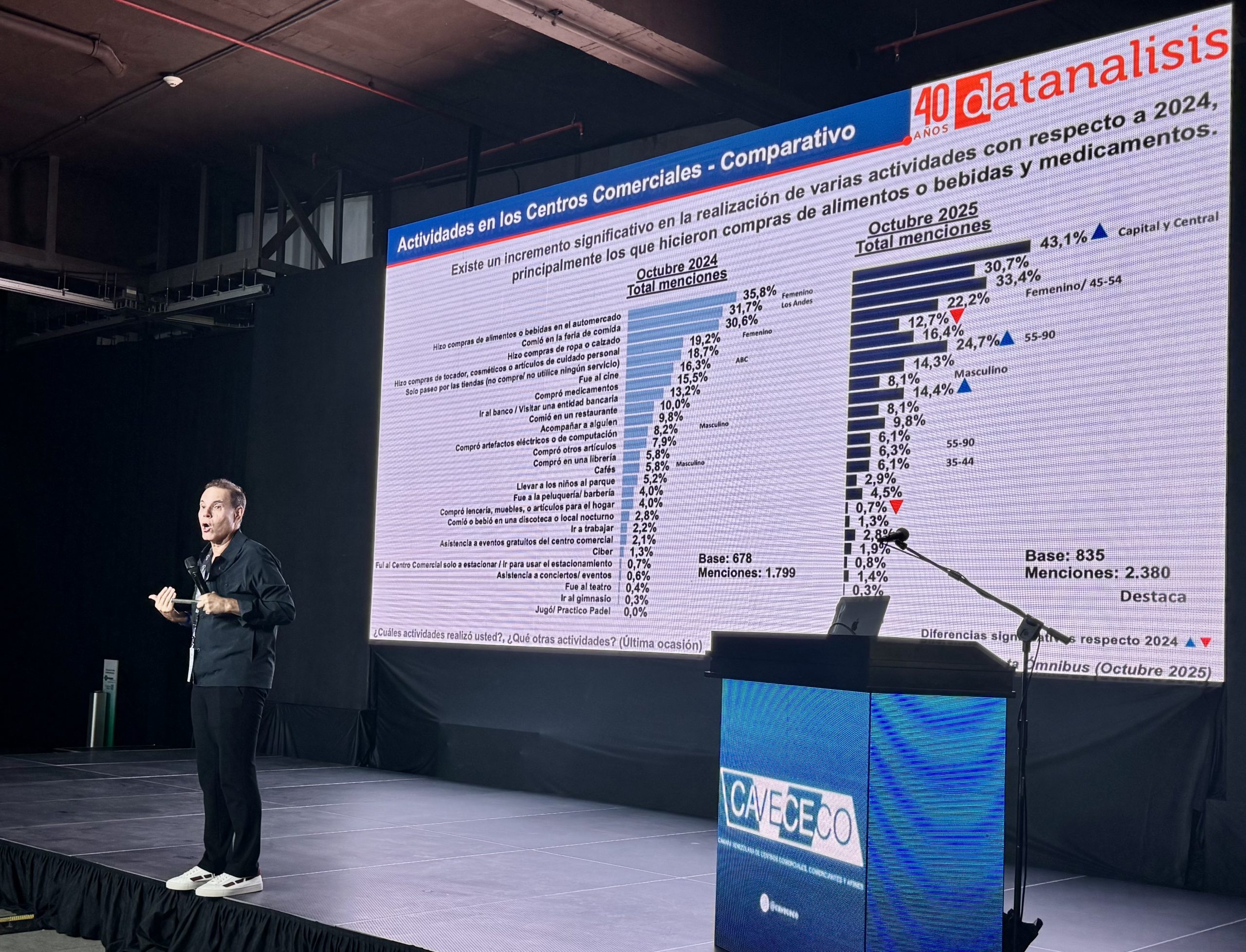 En el año 2025, el consumo promedio en los centros comerciales es de 59,9 dólares por persona, de acuerdo con información suministrada por Datanálisis en el marco del Congreso anual de la Cámara Venezolana de Centros Comerciales, Comerciantes y Afines (CAVECECO).