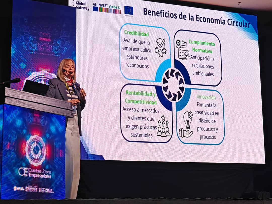La Cumbre de Líderes Empresariales, realizada en el marco de la Explosión Creativa 2025, en el Salón Plaza Real del Hotel Eurobuilding, recibió a la presidente ejecutiva de Conindustria, Cecilia Castillo, quien realizó una ponencia durante el Foro de Sostenibilidad, titulada “Sello Verde en Economía Circular: Oportunidad para repensar las empresas y ser más competitivos y rentables”. Su intervención reafirmó el compromiso del sector industrial venezolano con la transformación sostenible, la innovación y la resiliencia empresarial.