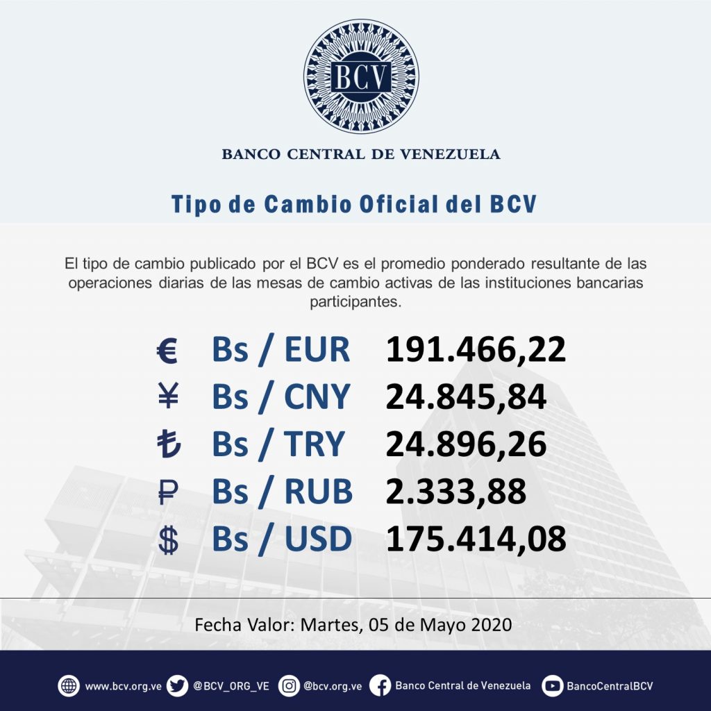 Este monto constituye una caída de Bs 1.123,96 con respecto a la jornada del pasado jueves 30 de abril, cuando la tasa se ubicó en Bs 176.538,04.