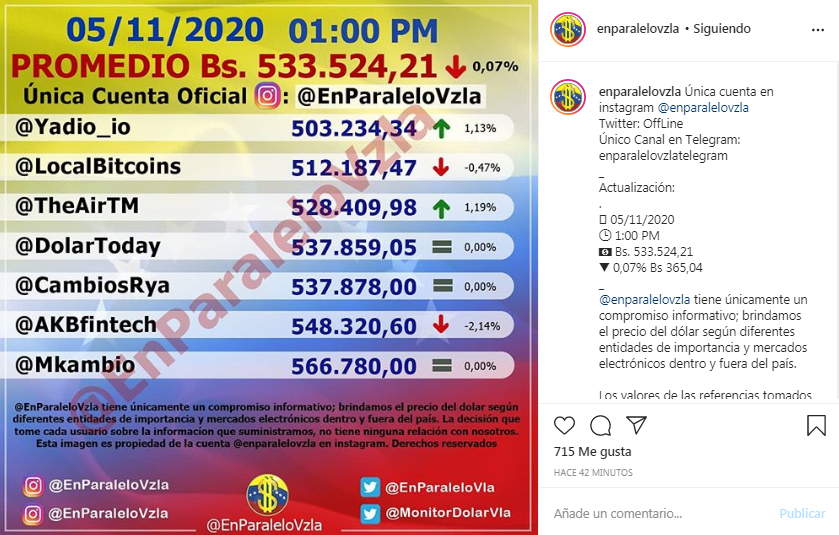 533.524,21, según lo reflejado en la cuenta de Instagram @EnParaleloVzla.