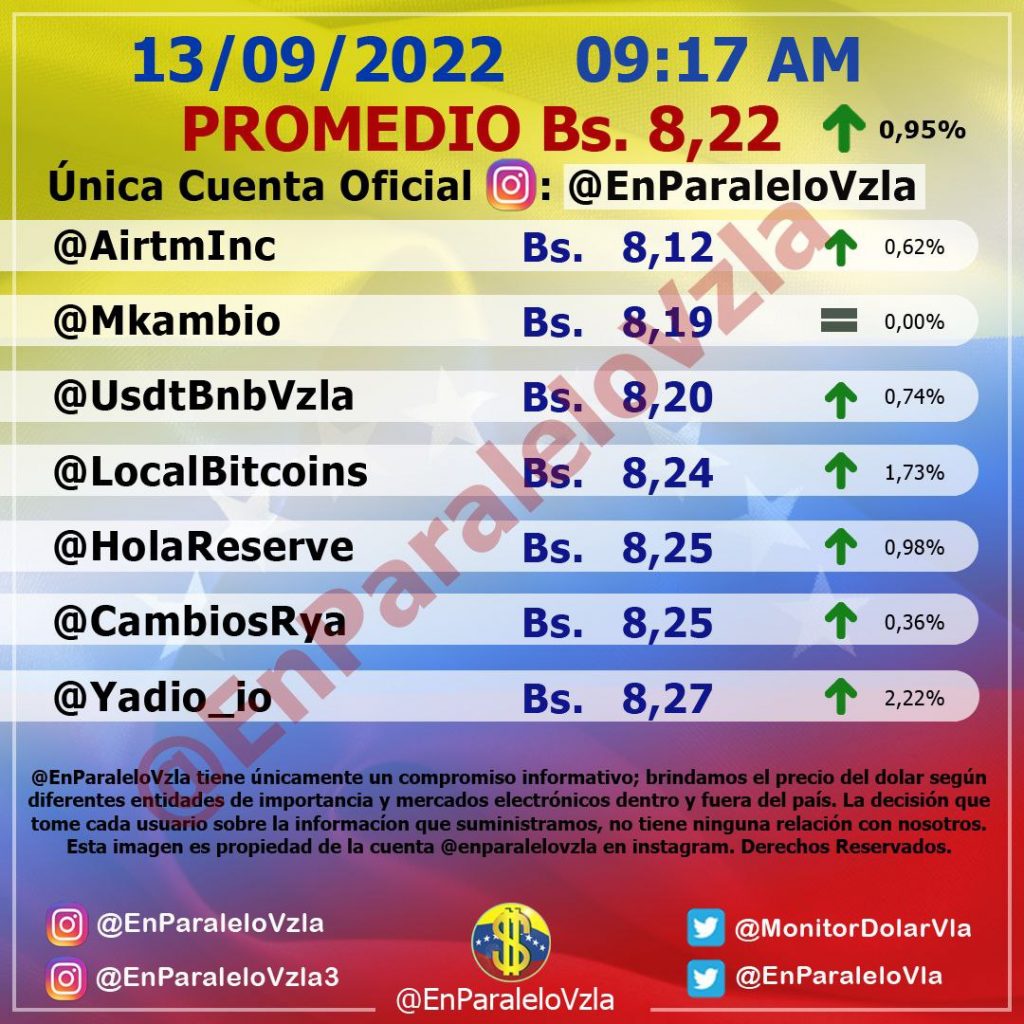 El dólar paralelo abrió la jornada de este martes con un leve incremento y se ubicó en Bs 8,22.