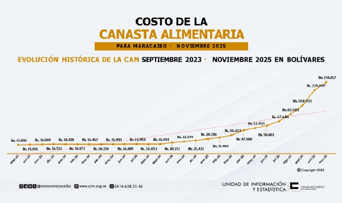 La Cámara de Comercio de Maracaibo subraya que el seguimiento mensual del costo de la canasta alimentaria constituye un instrumento técnico estratégico para interpretar la evolución de precios y su impacto en los presupuestos de los hogares y además que permite identificar tendencias de consumo, evaluar variaciones en los costos de los productos básicos y anticipar posibles movimientos del mercado alimentario.