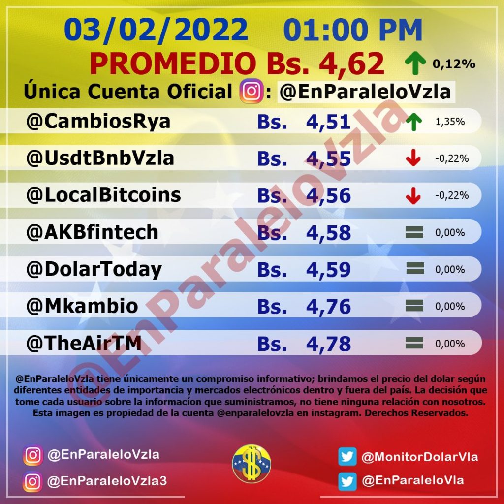 Dólar paralelo cerró en Bs 4,62 este #3Feb