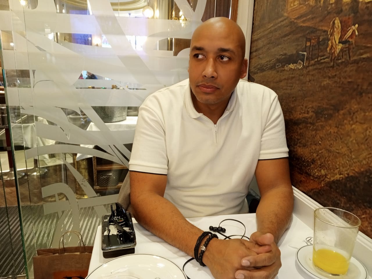 Con silencios prolongados hace posible la construcción de sus posibles respuestas. El frío en el ambiente se hace sentir, la humedad es seca por la brisa gélida en las calles de Madrid y se hace sentir, sobre todo en los caribeños acostumbrados a temperaturas cálidas y tropicales.