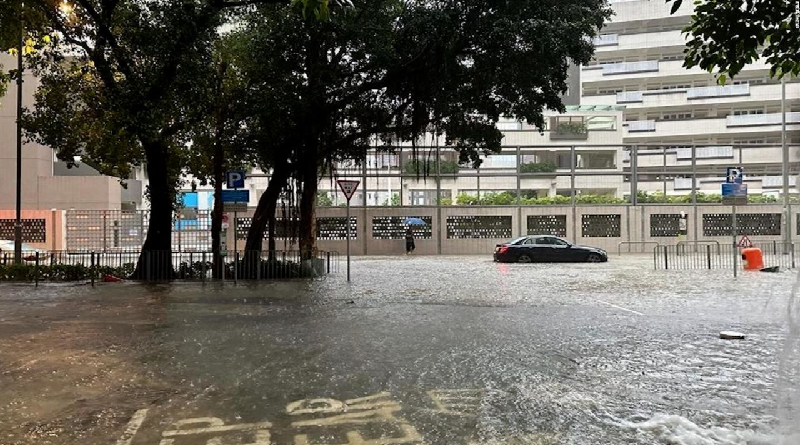 Una precipitación superior a los 70 milímetros azotó Hong Kong, ubicada en el sureste de China, este 5 de agosto, lo que llevó a la activación de la advertencia máxima, conocida como «señal negra» de tormenta.