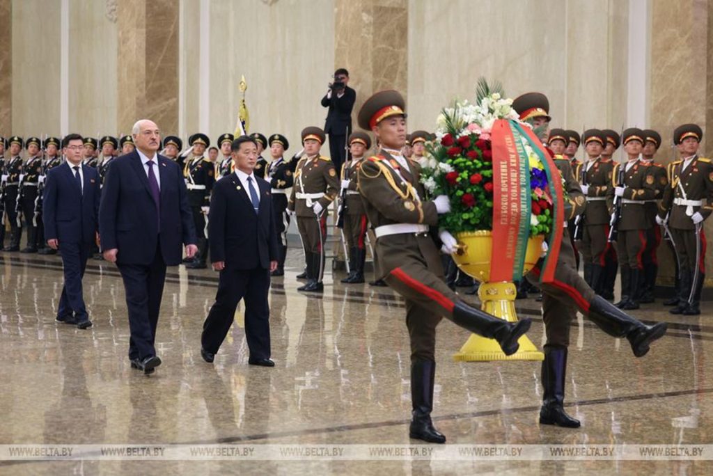 El líder bielorruso también rindió tributo al padre y abuelo de Kim (Kim Il-sung y Kim Yong-il) en el Palacio del Sol de Kumsusan, el mausoleo donde se preservan los restos embalsamados de ambos en sendos sarcófagos de cristal.