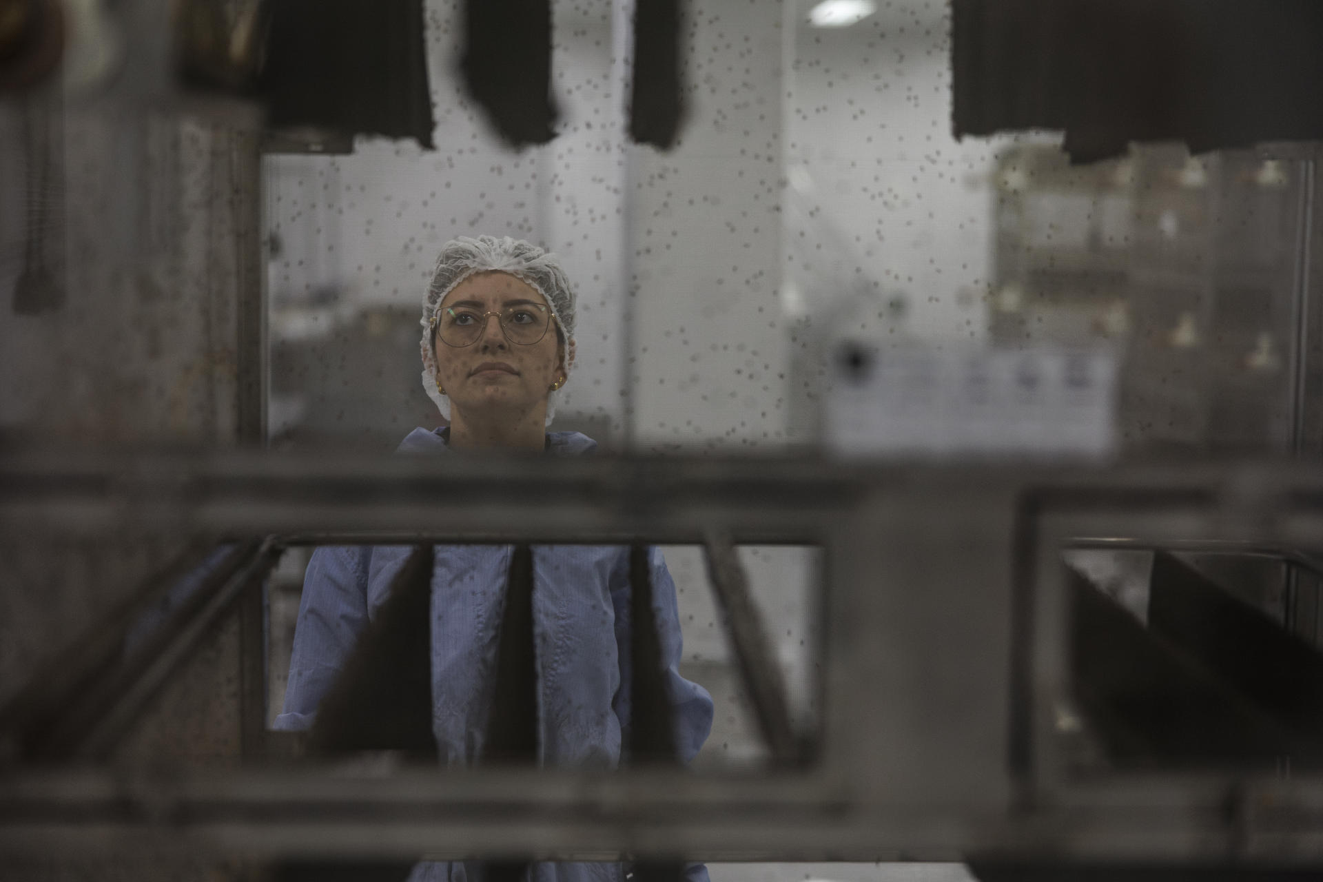 Para acceder a la planta de 1.300 metros cuadrados, los visitantes se tienen que poner bata y cubrirse el cabello con gorro de ducha. No es para protegerlos de los mosquitos, sino para proteger a los mosquitos de los visitantes y de los hongos que puedan cargar.