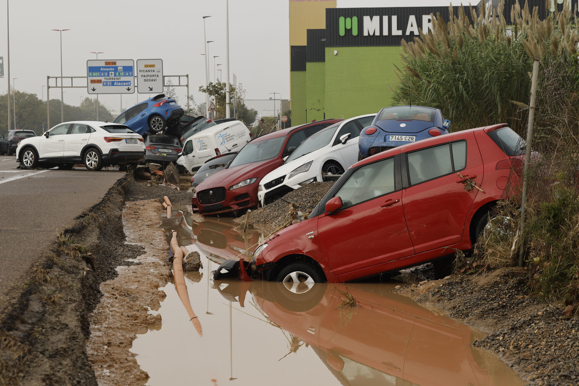 En la peor gota fría del siglo, según el primer balance realizado por la Agencia Estatal de Meteorología (Aemet), la crecida de los ríos y las inundaciones están dejando imágenes de desastre total en muchas localidades sobre todo de la Comunidad Valenciana, la más afectada, pero también en Castilla-La Mancha y Andalucía.