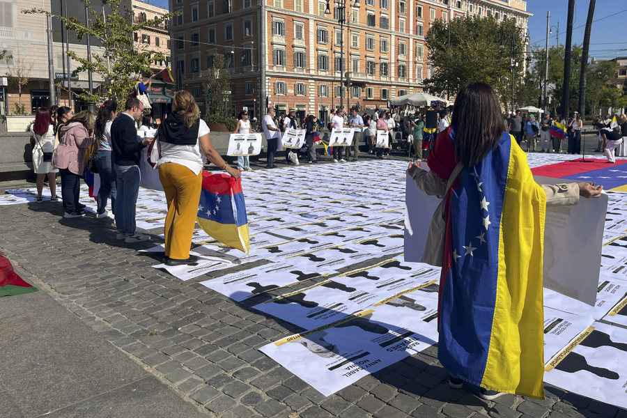 Decenas de venezolanos se congregaron este sábado en las calles de Roma, cerca del Vaticano, para exigir la liberación de los presos políticos en su país, en la víspera de la canonización de los dos primeros santos venezolanos: el médico José Gregorio Hernández y la religiosa Carmen Rendiles.