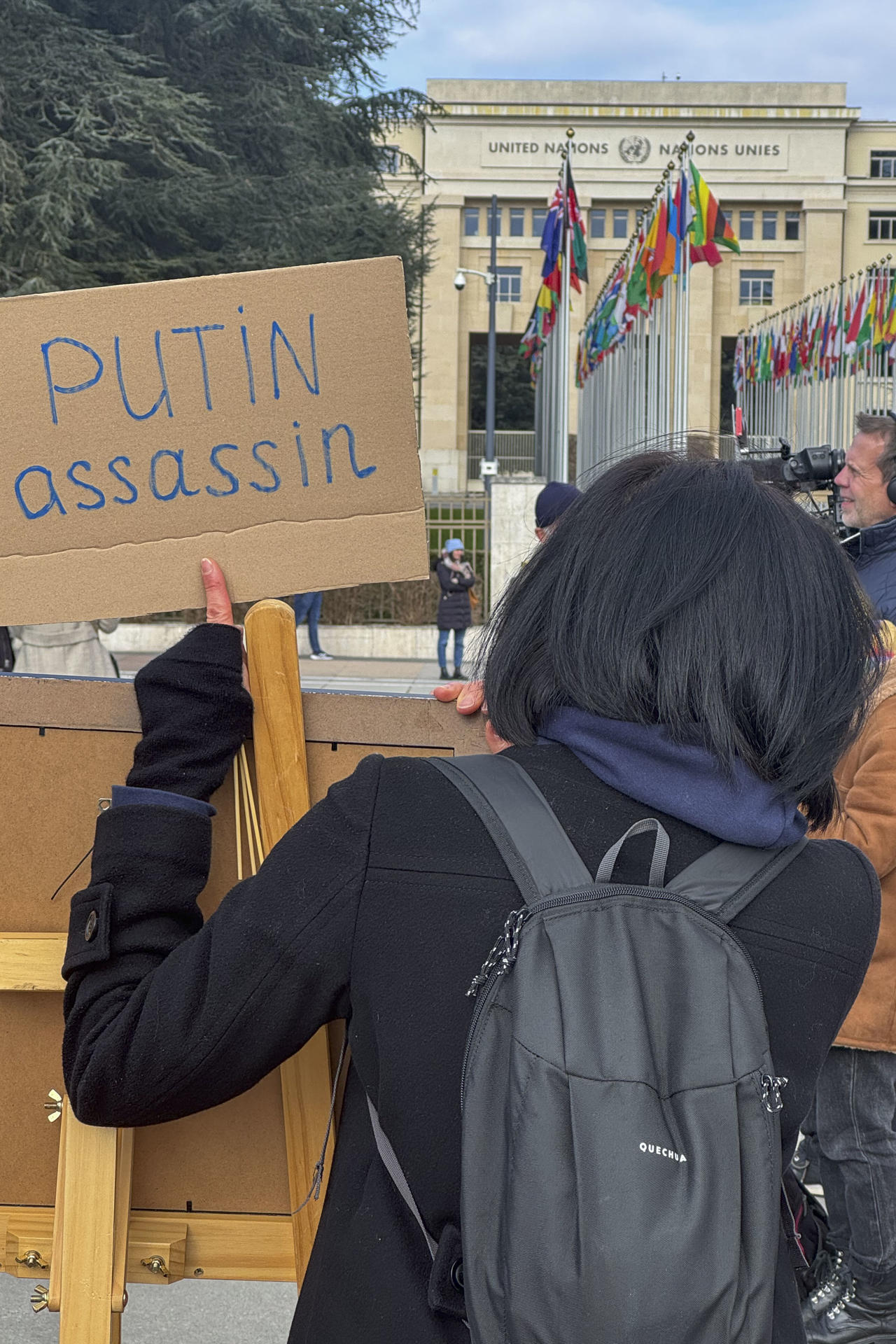 Coreando consignas como «Putin asesino» o «Paremos la guerra», y mostrando banderas de Ucrania y Georgia, cerca de un centenar de rusos protestaron ante la ONU en Ginebra