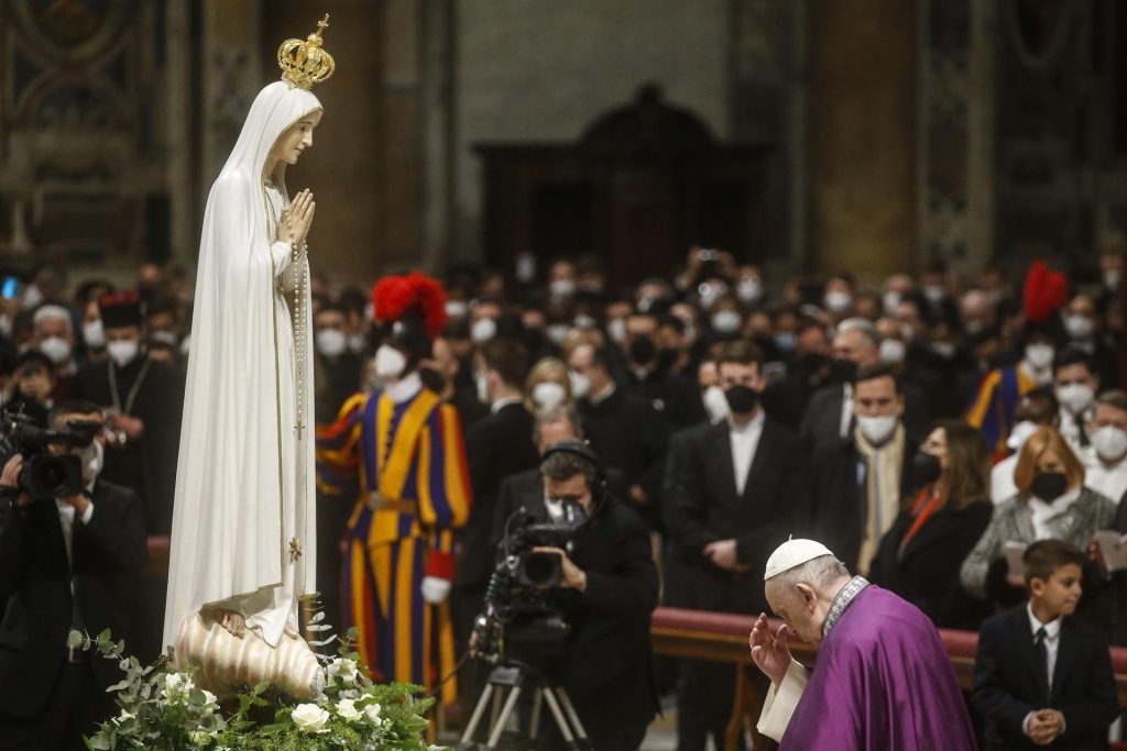 El momento de fe se centró en la crisis entre Rusia y Ucrania pero advirtió de los peligros para el mundo entero por lo que el Papa pidió a la virgen que interceda ante Dios y libre al mundo de «la amenaza nuclear».