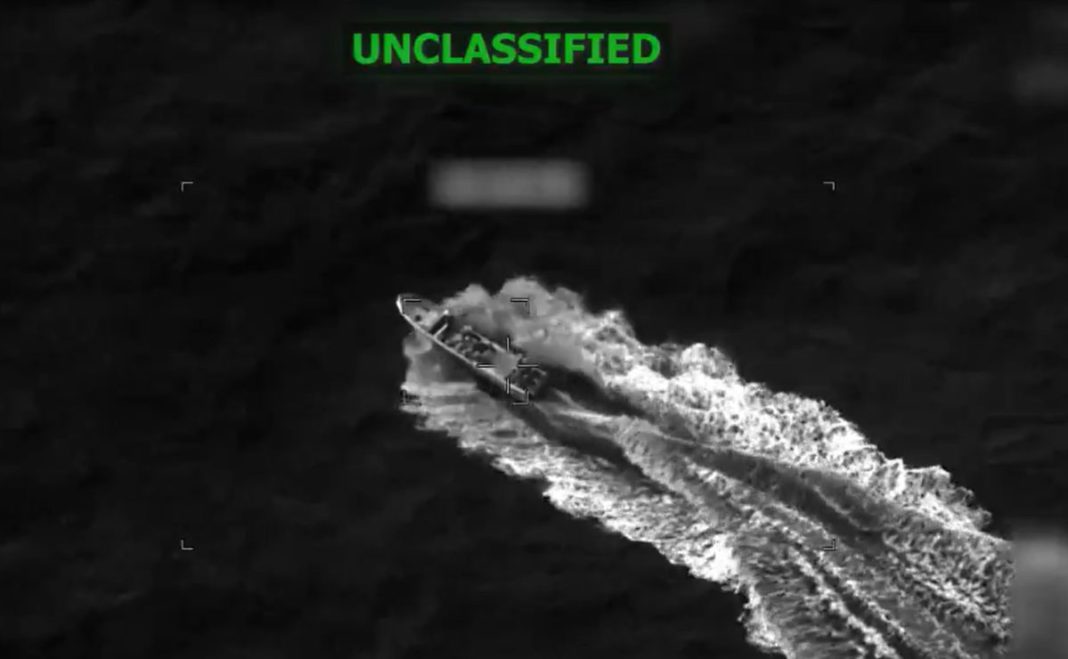 El Comando Sur estadounidense difundió un video del momento en el que la lancha resultó impactada por un proyectil, el pasado domingo.