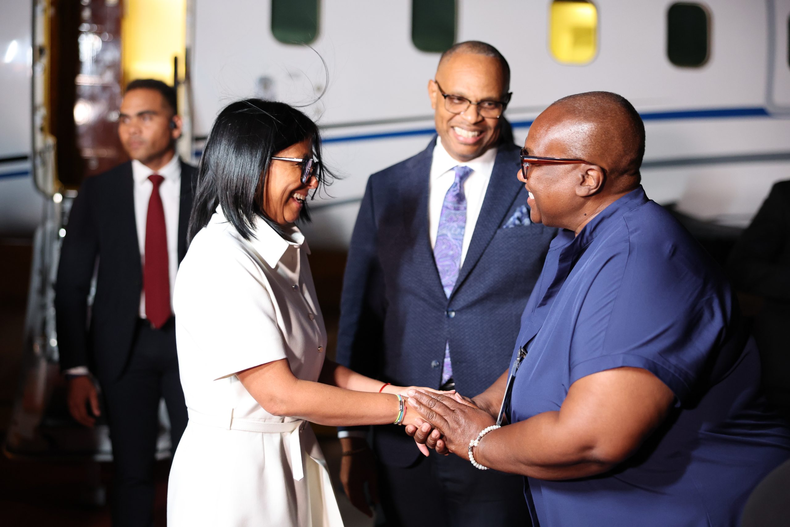 El canal estatal informó que la comitiva venezolana fue recibida por el ministro de Relaciones Exteriores y Comercio Exterior de Barbados, Christopher Peter Sinckler; junto a Selma Green, secretaria de Gabinete; y Alice Jordan, secretaria permanente de la oficina de la primera ministra, Mia Mottley.