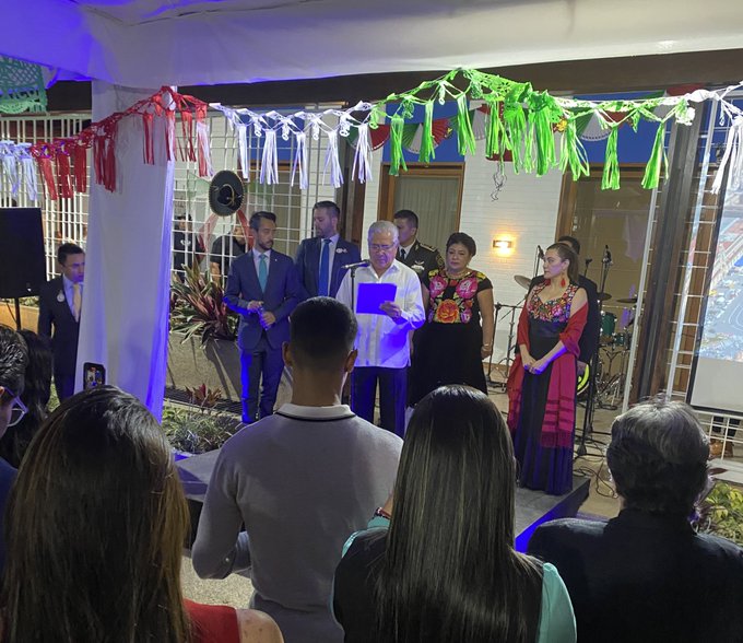 El embajador Leopoldo De Gyves de la Cruz y a su señora esposa, Rubiciela Nicolás Ramírez, en la conmemoración del Grito de Dolores que marca la Independencia de México, manifestó: «Celebramos la soberanía, la autodeterminación de los pueblos, la libertad y democracia del pueblo mexicano y de todo el pueblo latinoamericano. Rechazamos la injerencia de gobiernos extranjeros en los procesos políticos internos de cada nación«.