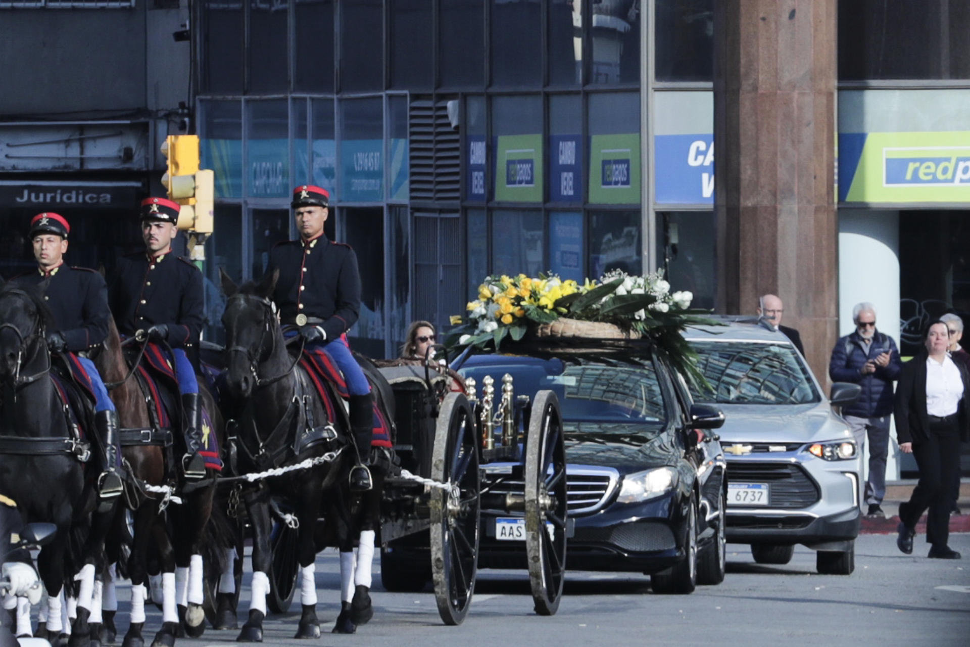Acompañado por miles de personas, el cortejo fúnebre partió este miércoles a las 10:00 hora local (13:00 GMT) desde la Torre Ejecutiva de Montevideo hacia el Palacio Legislativo.