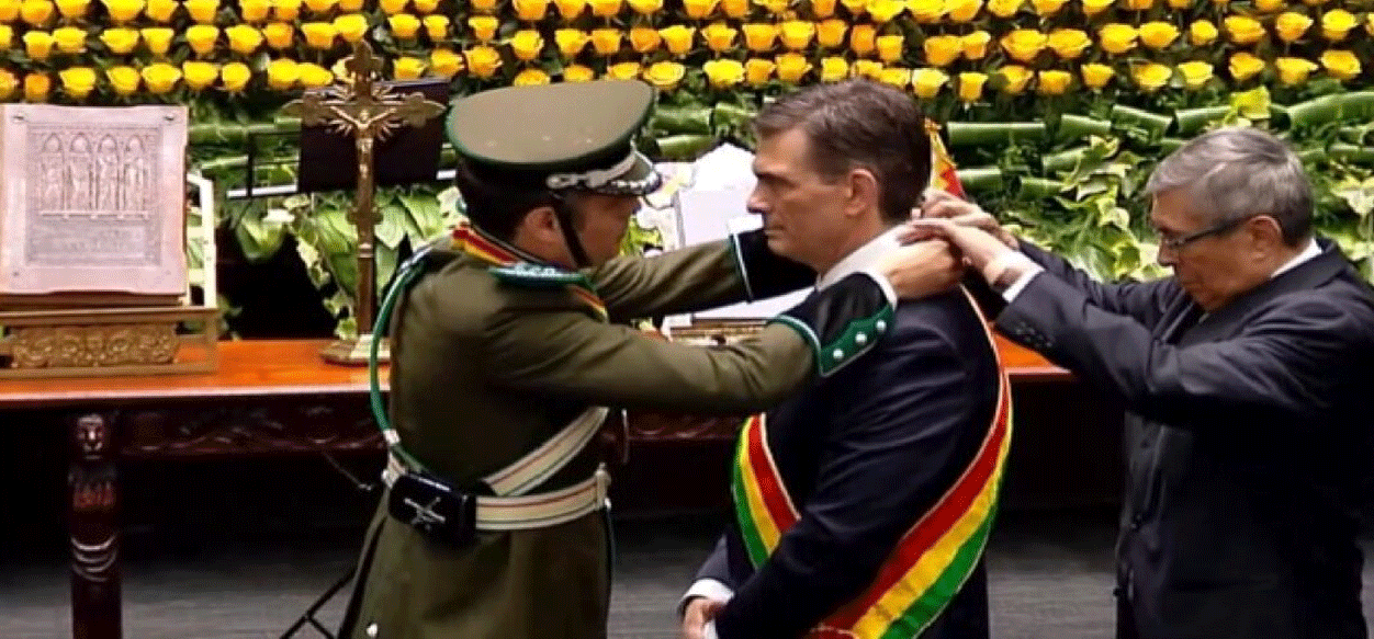 «Dios, patria y familia, sí, juro», sostuvo el nuevo mandatario boliviano al tomar juramento.