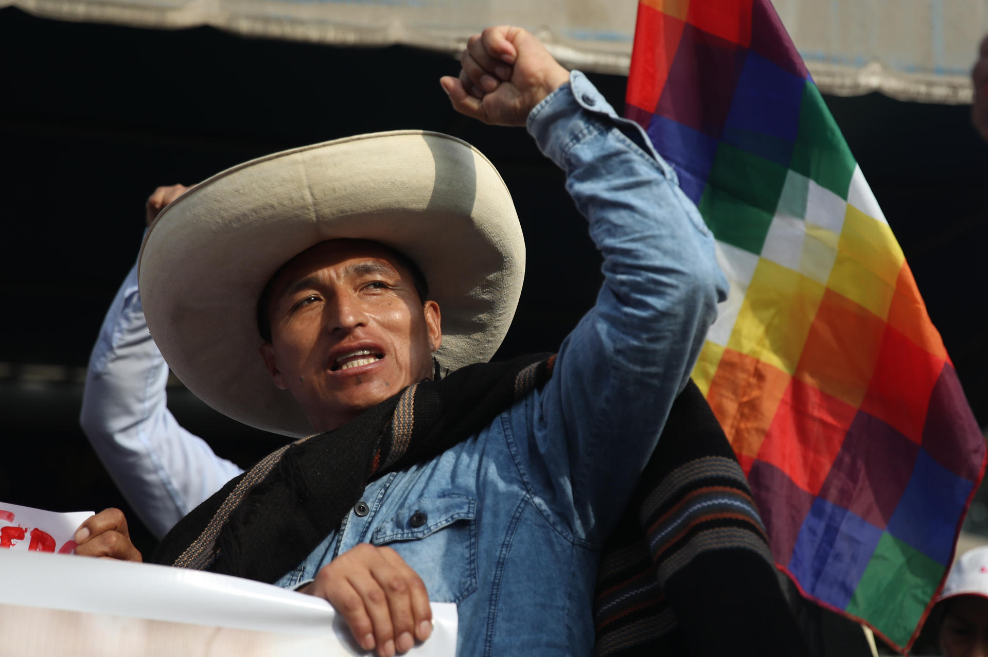 Los partidarios de Todo con el Pueblo aseguran que Castillo es víctima de un «linchamiento político», según los mensajes compartidos en carteles que mostraron a los medios de comunicación.