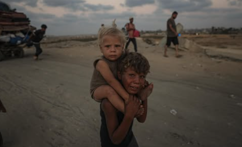 Un video conmovedor y desgarrador se ha vuelto viral en redes sociales, sirviendo como un poderoso recordatorio del coste humano de la guerra en Gaza. Las imágenes, captadas por el periodista y fotógrafo Ahmed Younis, muestran a un niño descalzo, con lágrimas en los ojos, llevando a su hermana pequeña sobre los hombros mientras camina por la ruta de desplazamiento del norte hacia el sur de Gaza.