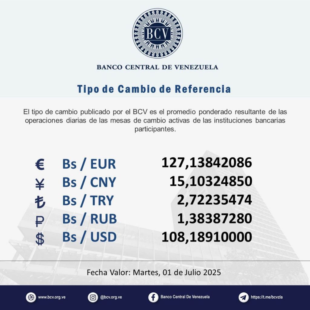 La variación respecto a la cotización anterior fue de Bs +0,56