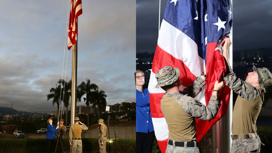 La Oficina Externa de Estados Unidos -EEUU- para Venezuela -VAU- anunció, en su cuenta oficial de X, que esta mañana, 14 de marzo de 2026, fue izada la bandera de EEUU exactamente siete años después de haber sido retirada en el año 2019 cuando la arriaron por última vez en suelo caraqueño.