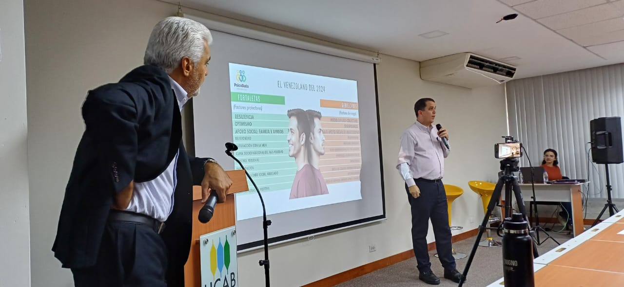 Oropeza destacó, al comienzo de la exposición, que el venezolano -como una moneda de dos caras- tiene factores protectores, como la familia, el humor y la capacidad de reinterpretar positivamente los problemas; y factores de vulnerabilidad, como el miedo difuso colectivo (cuatro de cada 10) y desesperanza (cuatro de cada 10).