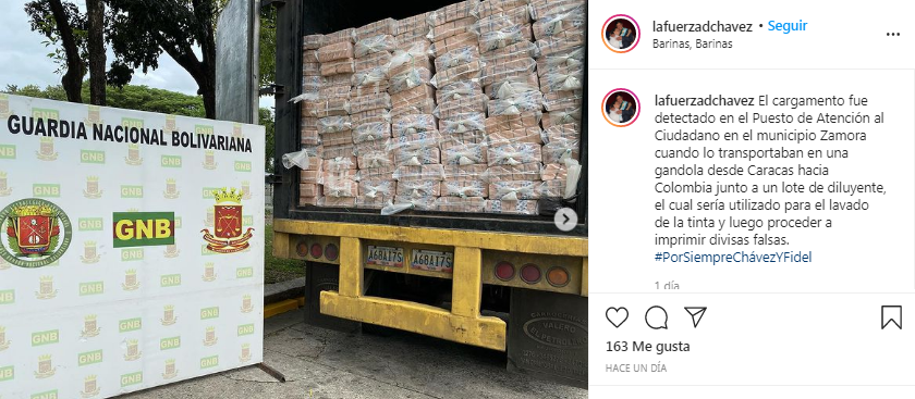 En tal sentido, el gobernador de Barinas, Argenis Chávez, dijo que «se decomisaron más de 5 millones 700 mil billetes de diferentes denominaciones que iban rumbo a Colombia. Esta gran cantidad de bolívares presumimos que iban a ser utilizados para convertirlos en divisas falsas, dólares, pesos».
