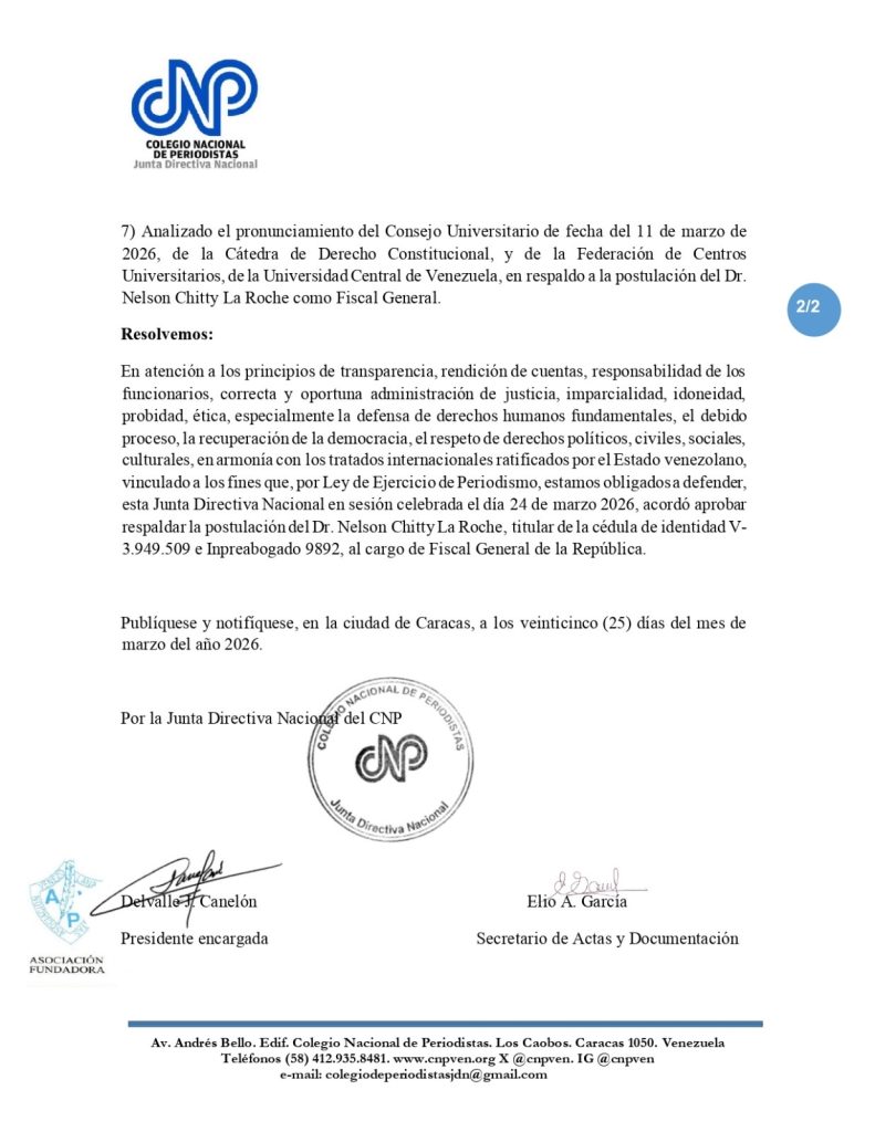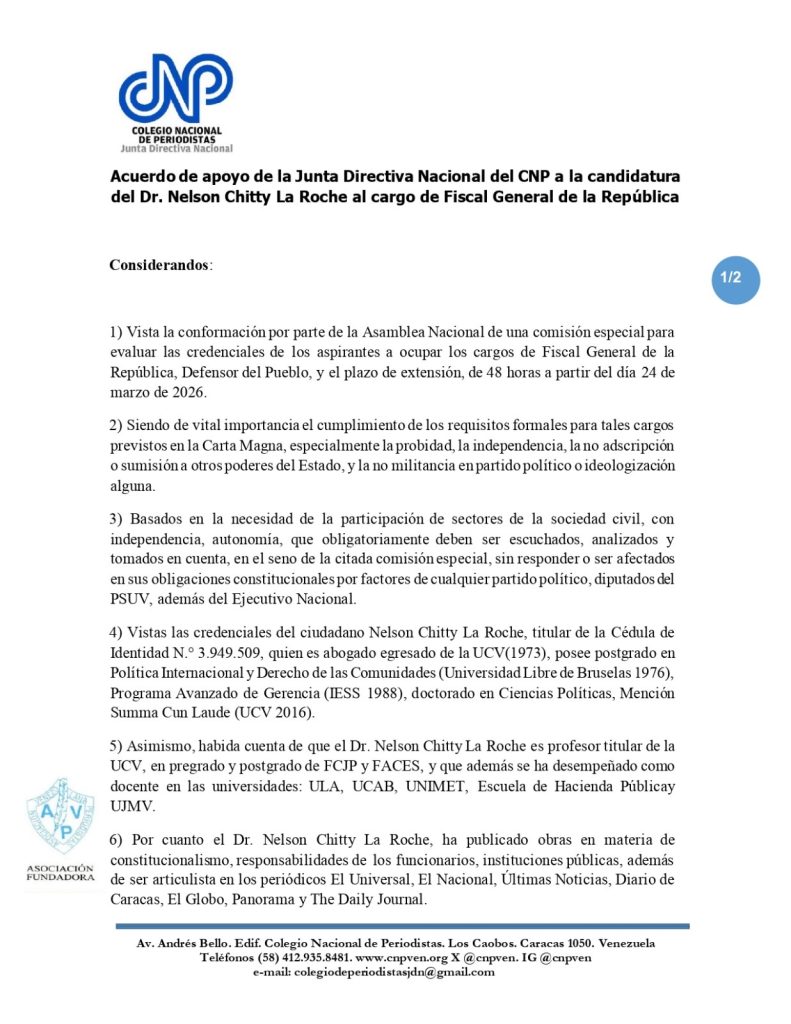 Colegio Nacional de Periodistas apoya candidatura de Nelson Chitty La Roche para el cargo de fiscal general